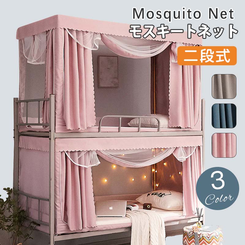 蚊帳 シングルベット 二段式ベット モスキートネット プライバシーテント スタンドタイプ 二重ドア メッシュ 無地 ブラケット付きません 学生 寮 防蚊 防虫 天蓋 遮光 日よけ 通気性