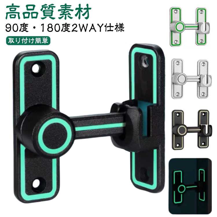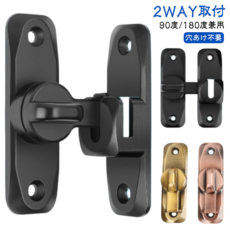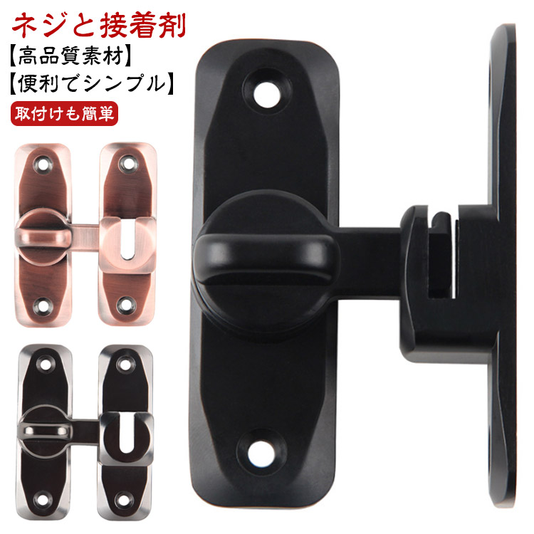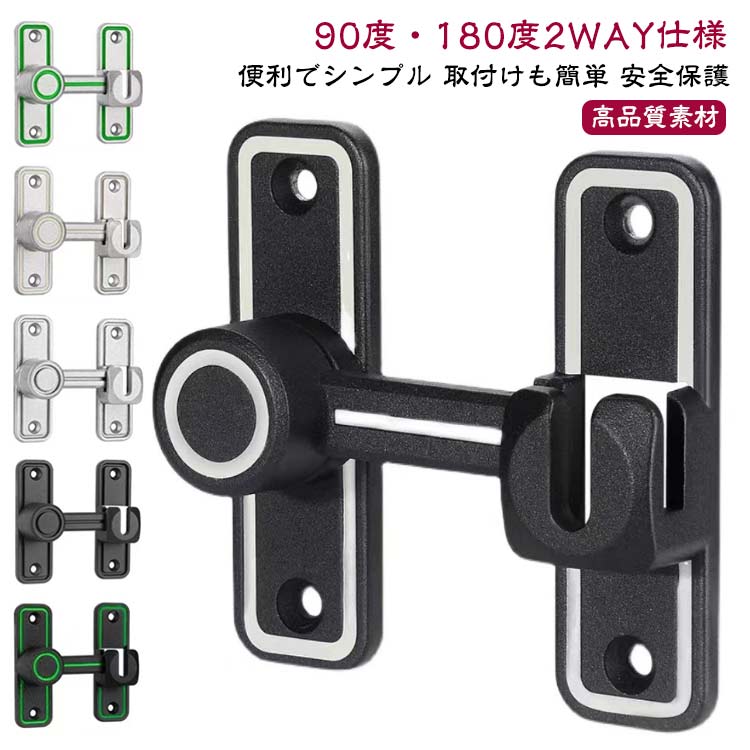 鍵 ドアロック ドアバックル 鍵 90度 180度 回転式 ドア留め金ロック 後付け 後付け 亜鉛合金 フリップラッチロック スライディングドア 引き戸