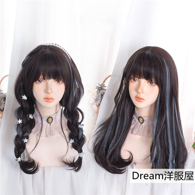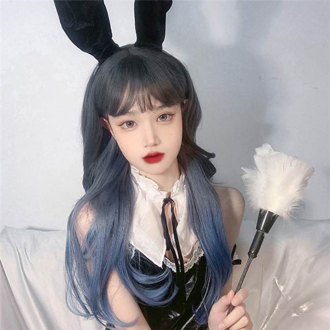 ブルーグレー60cm長髪 ロング ロリータ 原宿風 巻き毛 ぱっつん前髪 可愛い ロング 耐熱ウィッグ コスチューム 仮装 自然 ナチュラル イベント 文化祭 普段使いかつらレディースウィッグアッシュ