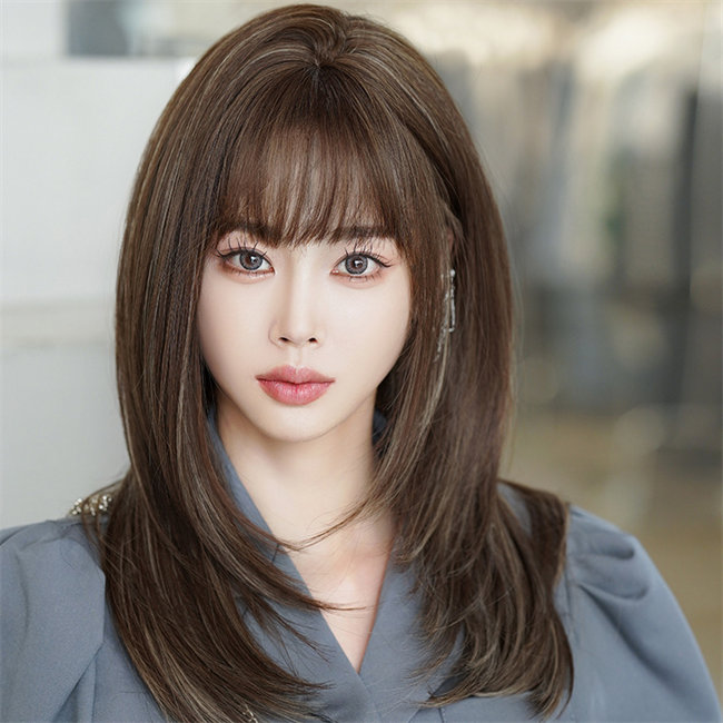 ブラウンウイッグ59長髪 ロング ロリータ 原宿風 つけ毛 ストレートぱっつん前髪 可愛い ロング 耐熱ウィッグ コスチューム 仮装 自然 ナチュラル イベント 文化祭 普段使いかつらレディースウ