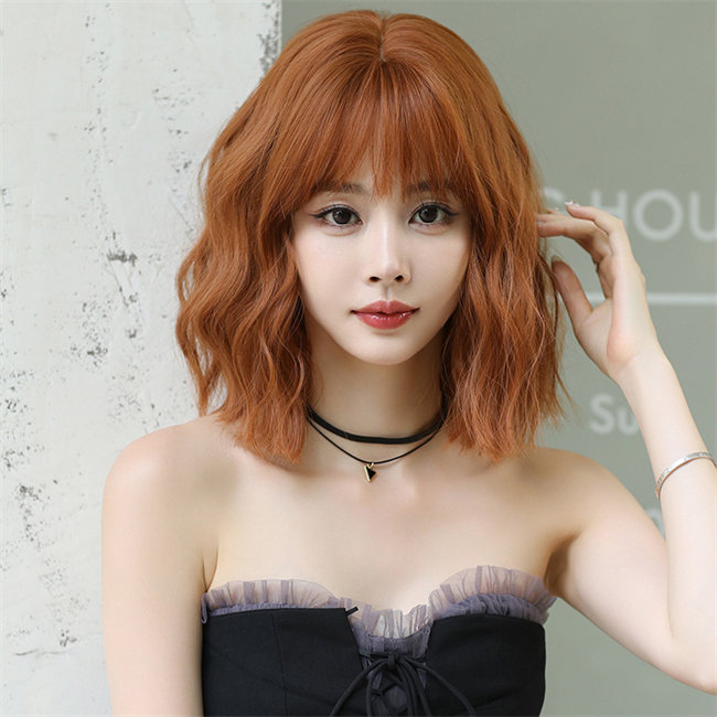 オレンジ34ウィッグ ショート ボブ 短髪 ショート巻き毛 フルウィッグ かつら 前髪 可愛い 耐熱ウィッグ コスチューム 仮装 自然 普段使いレディースウィッグアッシュ 日常 ウェーブ大人用つけ