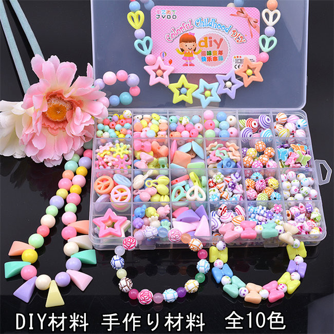 10タイプ展開アクセサリー ビーズキット パーツ 子ども おもちゃ 10種類 大容量 ビーズセット カチューシャ付き ネックレス 指輪 小学生に人気 ブレスレット収納ケース付 アクセ 女の子 知育玩具