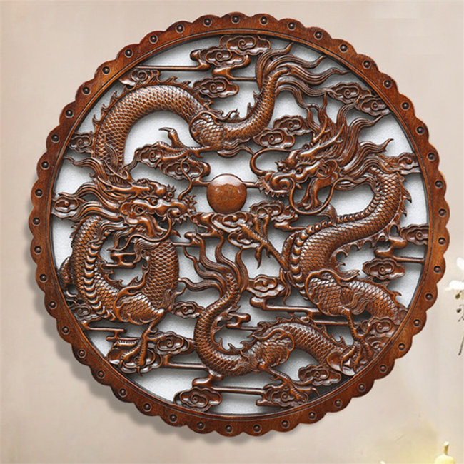 直径58CM 木製 壁掛け 壁飾り 彫刻木彫り 手彫り 【壁掛け アート 壁掛け 飾り木彫りの壁掛け 木の飾り インテリア 木製彫刻 パネル フレーム アート バリ 雑貨 玄関龍