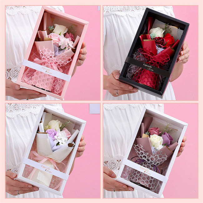 4色展開ボックスシャボンフラワー 花束 ギフト ソープフラワー ギフト フラワーソープ 誕生日プレゼント フラワー バラ 枯れない花 おしゃれ 石鹸素材 女性 女友達 キッズ子供フラワー ブーケ ウェ
