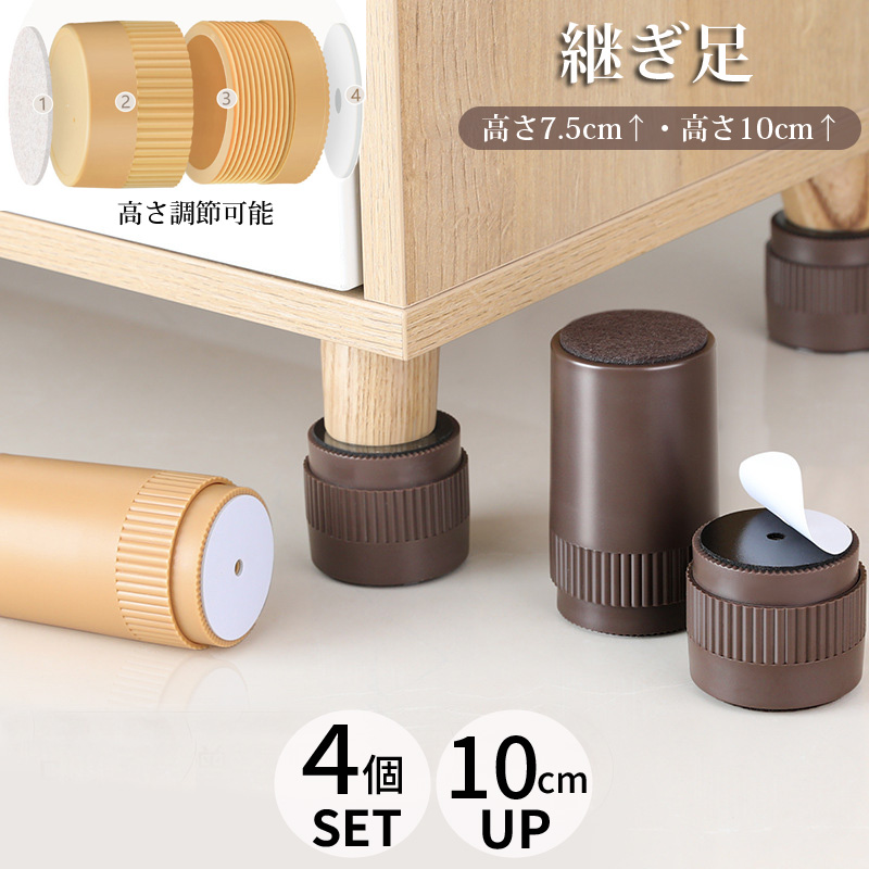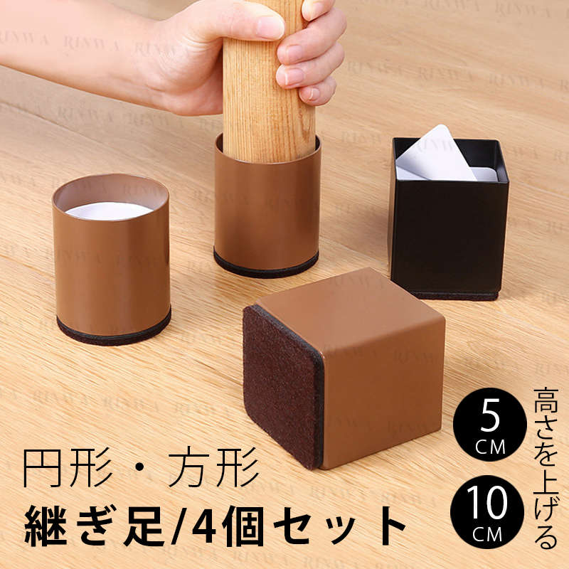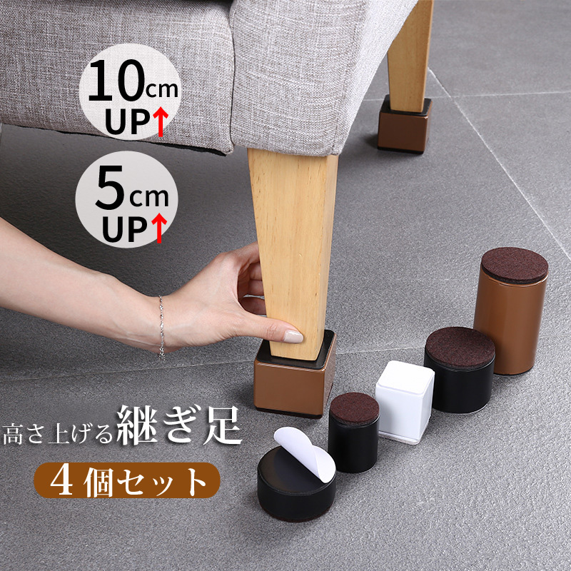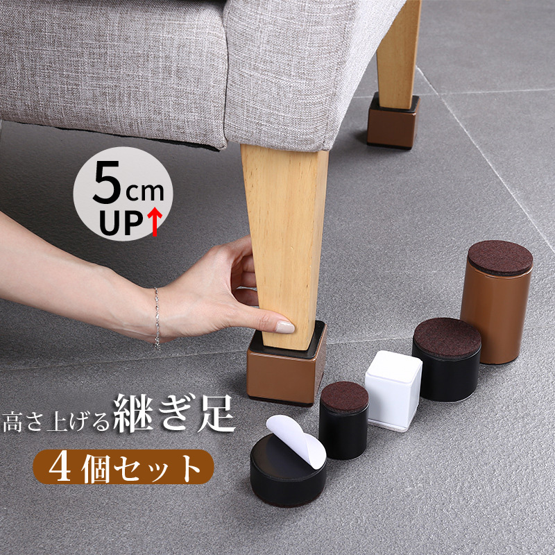 継ぎ脚 高脚 継脚 継足 高さ調整 4個入り +3 5cm テーブル ベッドの高さ調節 長脚 脚長 こたつ 脚高 シンプル 高さ調節脚 継足し 継ぎ足 テーブル脚台 粘着式 こたつ 継足し 継ぎ足 高