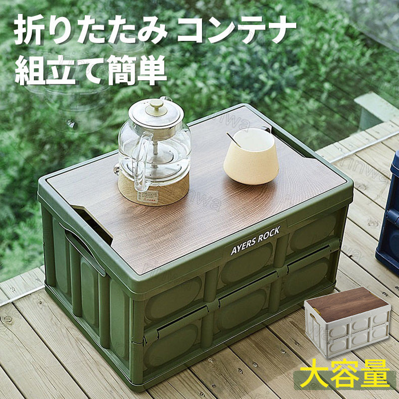 収納ボックス 折りたたみ コンテナボックス 木蓋付き 大容量 収納ケース アウトドアテーブル 積み重ねボック キャンプテーブル 車載収納 組立簡単