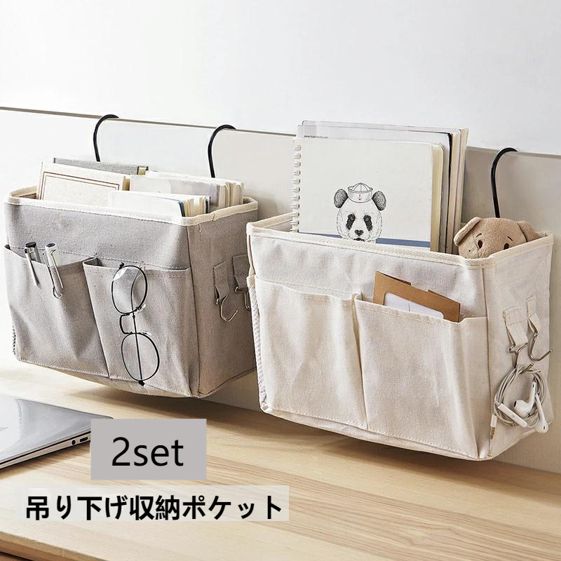 ベッドサイド ポケット 収納 ポケット 吊り下げ収納 雑貨収納 クローゼット 携帯 眼鏡 メガネ 本 ペン 大容量 多機能 収納ラック 雑誌 小物入れ2個セット 収納ポケット 小物入れ 新聞 -