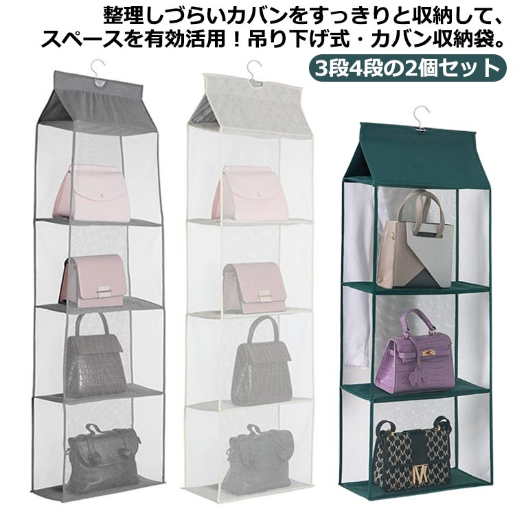 2個セット バッグ収納 カバン ケース 防塵 透明 バッグハンガー 棚上 吊り下げ クインテリア 寝具 収納 収納家具 押入れ収納 収納ケース ボックス