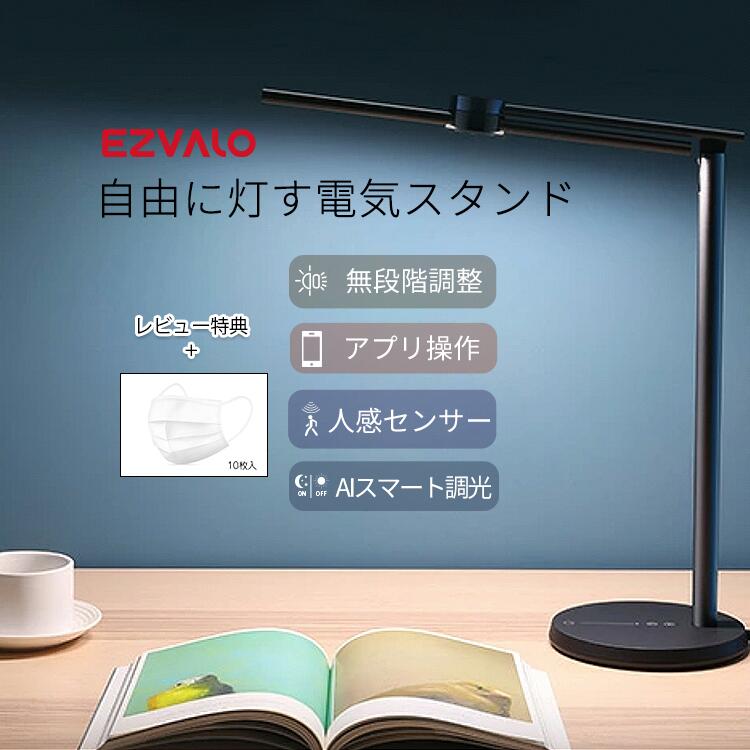 EZVALO 自由に灯す電気スタンド LED 卓上ライト アプリ操作 デスクライト スタンドライト デスクランプ 人感センサー 自動調光 無段階調整 電球色 昼白色 昼光色 Alexa対応 フレキシブ
