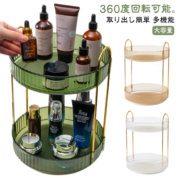 洗面所収納ボックス 透明 メイクボックス コスメ収納 大容量 整理簡単 メイク道具 小物入れ 多機能 コスメボックス 2層 収納ボックス 360°回転
