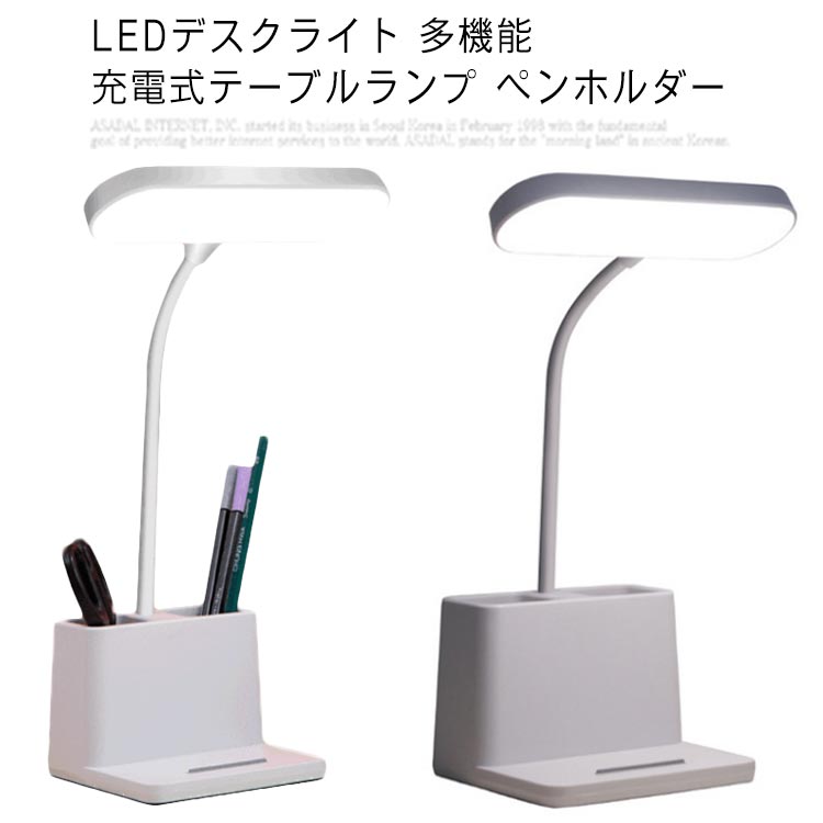 デスクライト 多機能充電式テーブルランプ ペンホルダー 充電ポート ナイトライト 白光 暖光 3階調光、360°回転可能 寮 ホーム 寝室に適用 読書 勉強 仕事