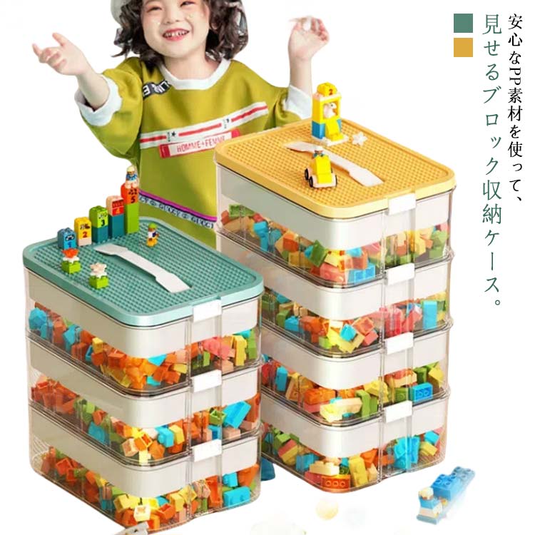 収納 持ち手付き ブロック ケース おしゃれ 収納 整頓 おもちゃ 仕切り ブロック収納ケース 整理 収納ボックス 子供 2段 展示台 蓋付き ブロック