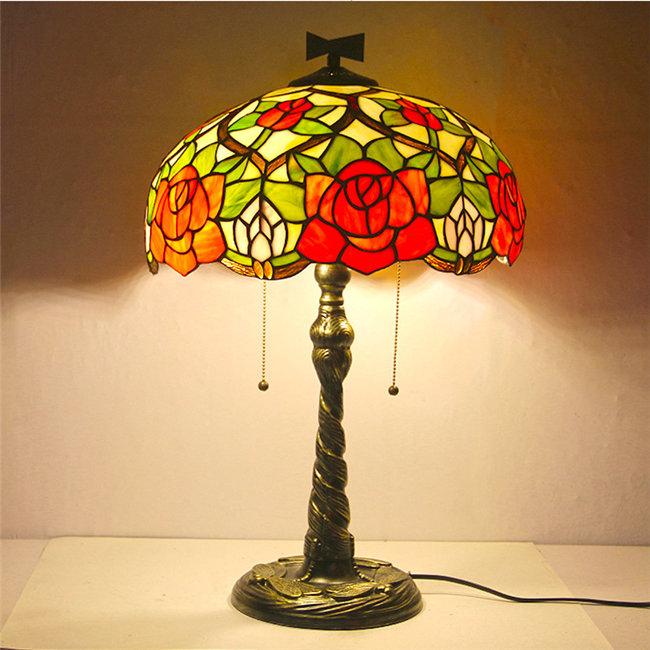 30*45 3色展開ステンドグラスランプ スタンド照明 おしゃれ チューリップ ガラス 上質 ステンドグラス ランプ ローズ アンティーク 小型 対応 ギフト 卓上照明 花柄 テーブルランプ