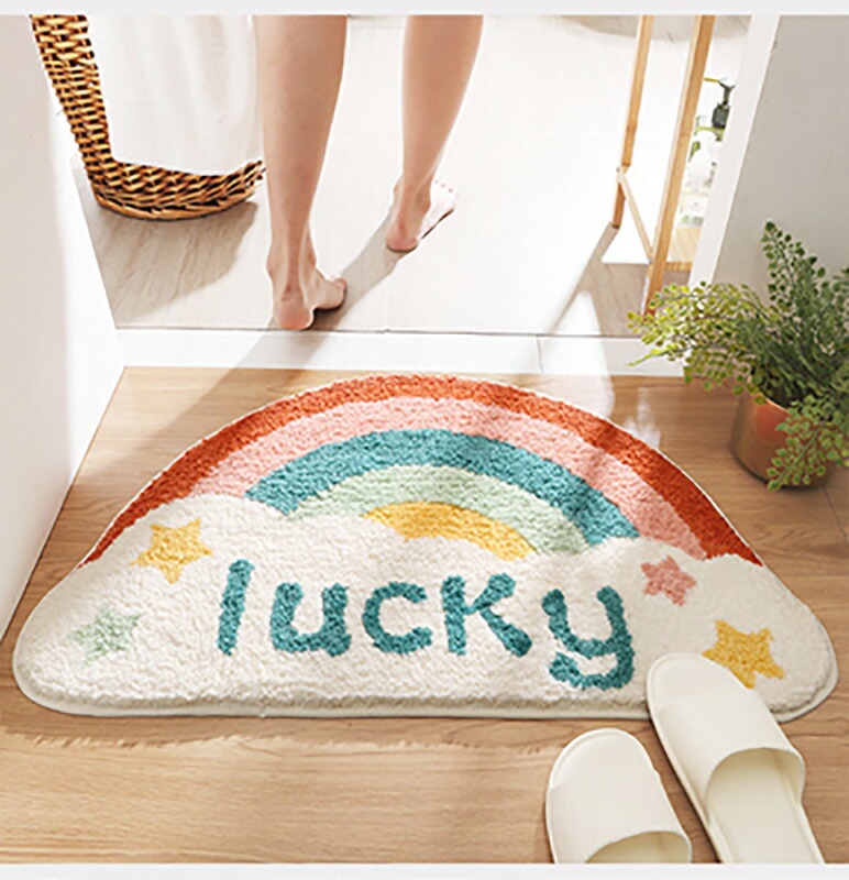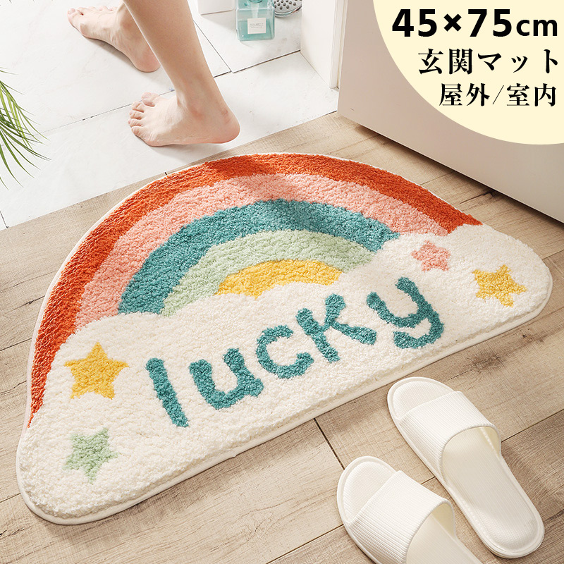 玄関マット 足ふきマット 寝室 トイレ 浴室 階段マット 雲 レーンボー サンシャイン ドアマット バスマット 吸水 滑り止め サラサラ おしゃれ 可愛い c-didian-12379-gg