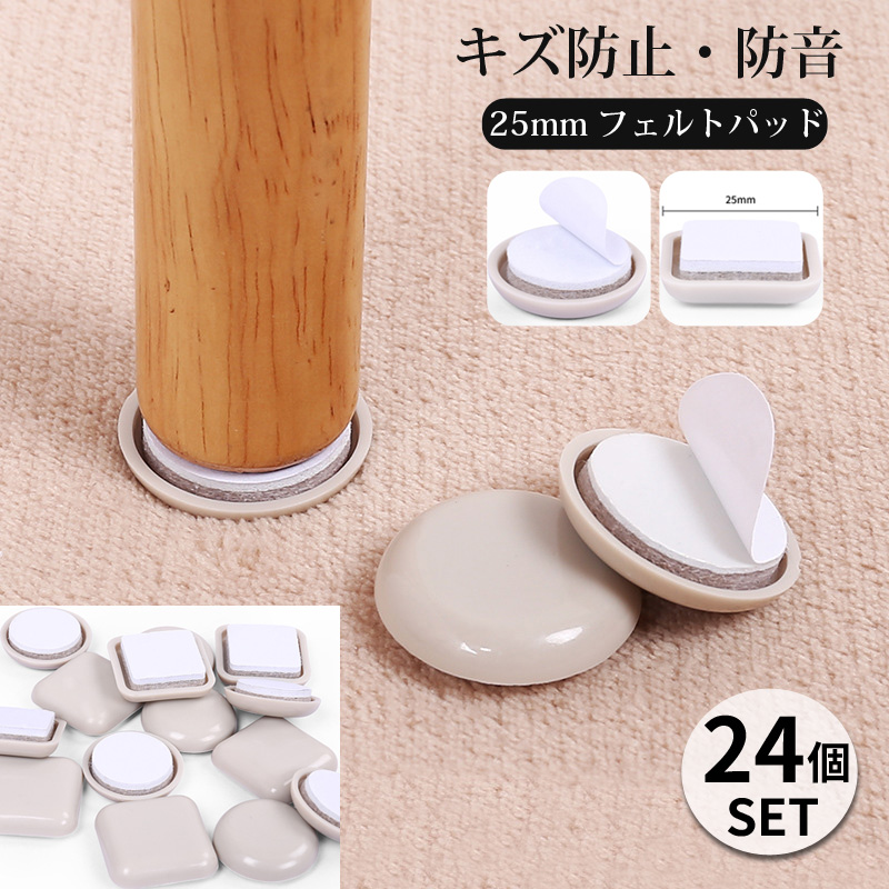 床 フローリングの保護 キズ防止に フェルトパッド 24枚入 家具移動パッド 粘着 家具が楽に移動できる 傷防止 防音 円形