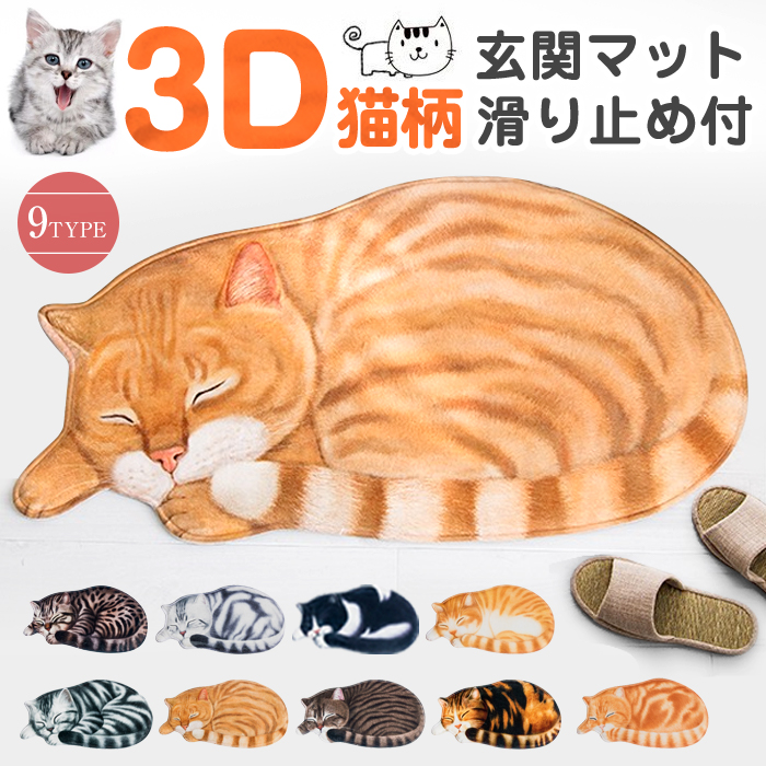 玄関マット カーペット フロアマット 洗える 3D猫柄ラグ ラグマット 滑り止め付 リビングルームカーペット ソファ フロアマット 玄関マット マット 家庭用