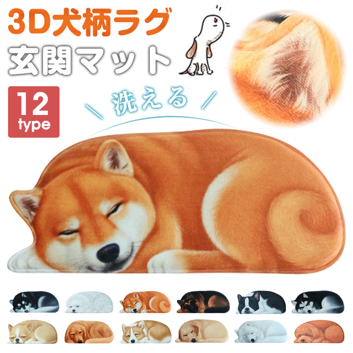 玄関マット カーペット ワンチャン フロアマット 洗える 3D犬柄ラグ いぬ ラグマット 滑り止め付 リビングルームカーペット ソファ