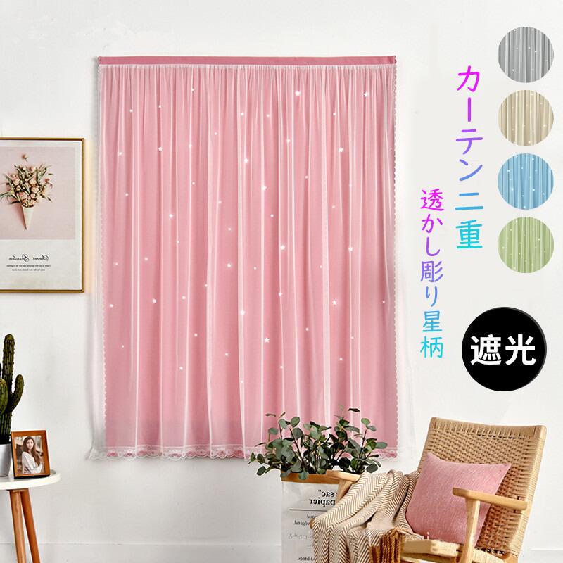 カーテン二重 遮光カーテン 透かし彫り星柄 マジックテープ掛け レース おしゃれ かわいい シェードカーテン 簡単設置 暗幕カーテン 遮光 騒音低減 快適な室内温度維持 窓 断熱 目隠し 洗える 寝室