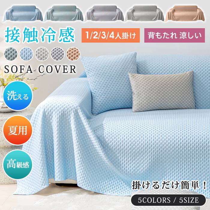 接触冷感 ソファーカバー マルチカバー 夏用 1 2 3 4人掛け 北欧風 洗える 洗濯 エレガント かけるだけ 滑り止め