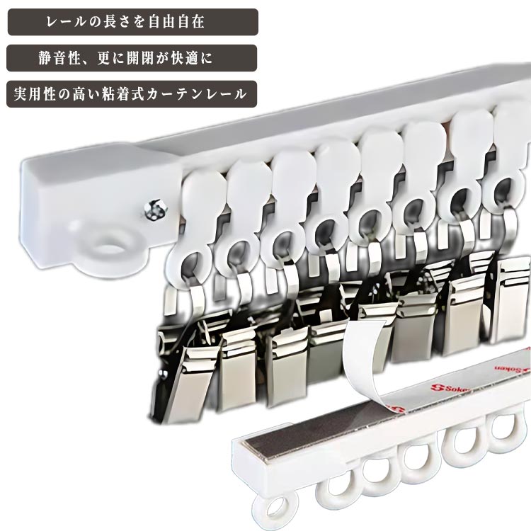 穴をあけないカーテンレール 静音タイプ 目隠し 機能性 軽量 薄型 レール テープ式 小窓 寝室用 出窓用 棚用 子供部屋 プレーン 50-300 リビング 簾 賃貸 白