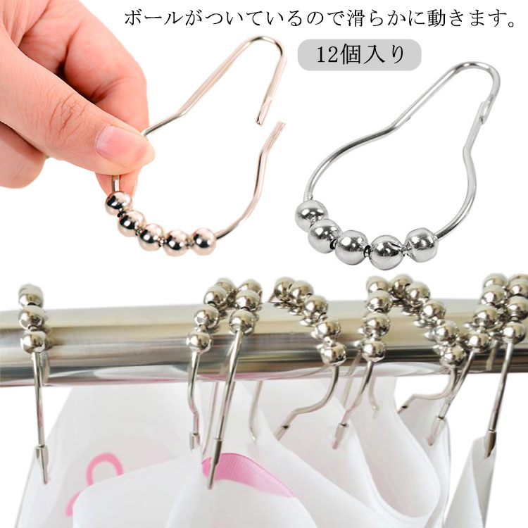 カーテンフック 12個入り リング シャワーカーテン フック カーテン カーテンフック カーテンリング 取付簡単 ユニットバス ボールで動き滑らか