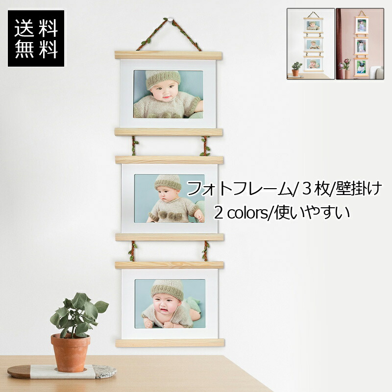 フォトフレーム ウッドフレーム 3枚 壁掛け 可愛い 使いやすい 写真入れ 絵画入れ ポストカード アルバム インテリア プレゼント おしゃれ