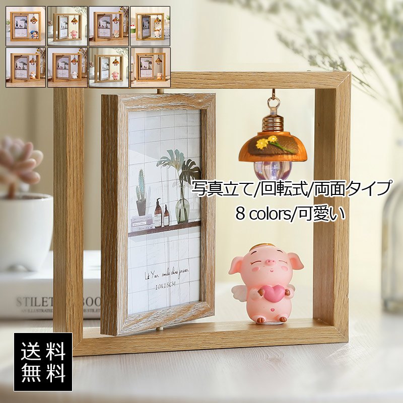 写真立て フォトフレーム ウッドフレーム 回転式 両面タイプ 使いやすい 写真入れ 絵画入れ ポストカード アルバム インテリア プレゼント おしゃれ