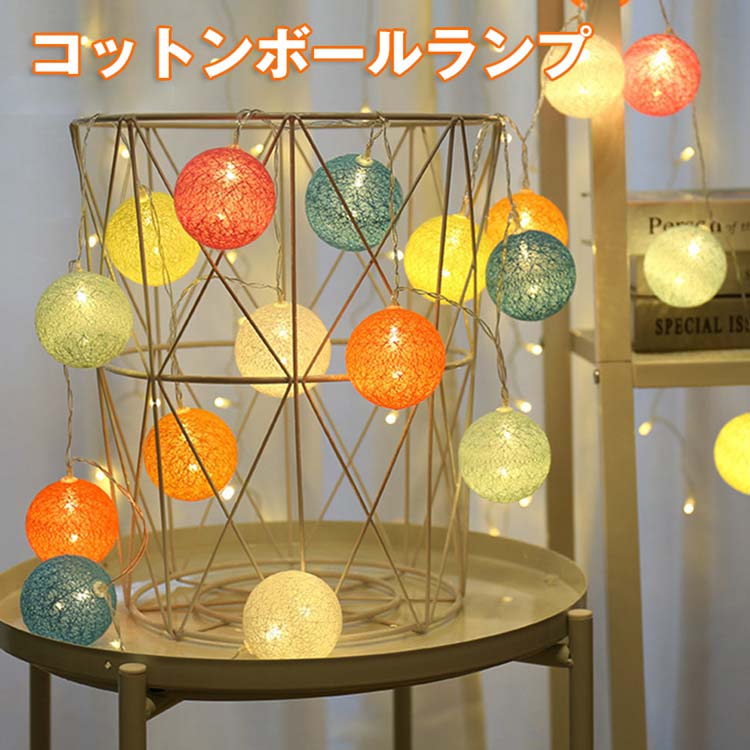 コットンボールランプ 間接照明 ガーランド 3m 20球 イルミネーションライト LEDライト フロアライト カラフルボールライト インテリア照明 電池式 USB式 店舗装飾 子供部屋 室内用 パーテ