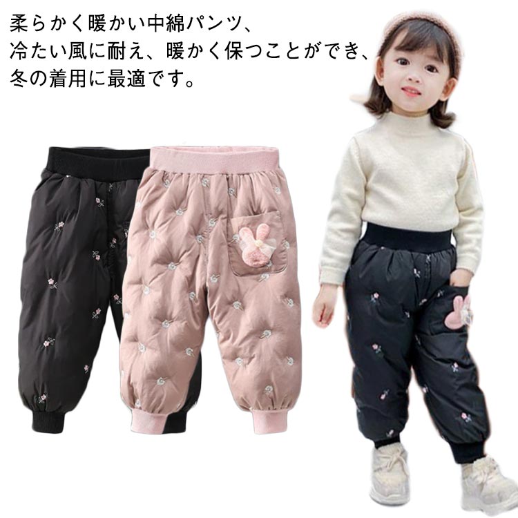 中綿パンツ キッズ ダウン風 ベビー 子供服 防寒 雪除け 裏起毛 中綿 ジョガーパンツ スノーパンツ 男の子 女の子 ボトムス ウェストゴム ズボン パンツ スノーウェア スキーウェア 無地 雪遊び