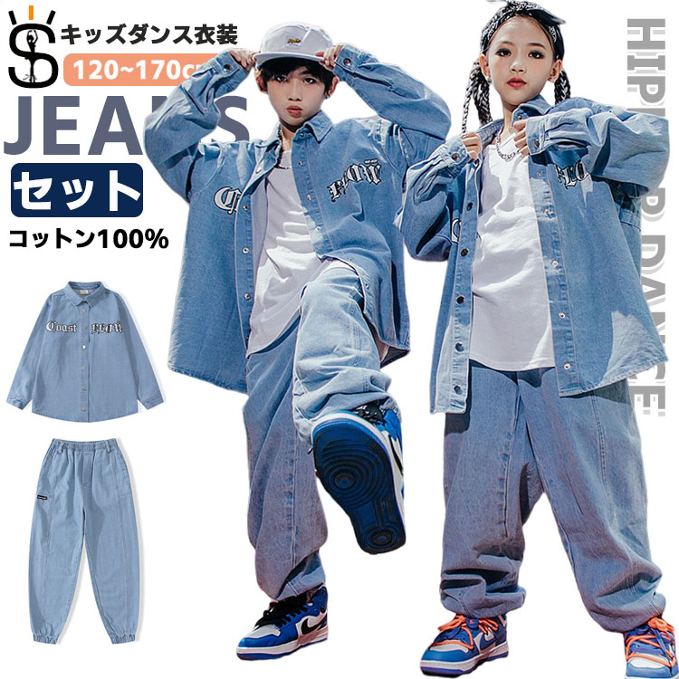 大量注文 2点セット 男女兼用デニムスーツ 子供 キッズ 女の子 男の子 ダンス衣装 ダンス 衣装 ヒップホップ ダンス衣装 セットアップ 衣装