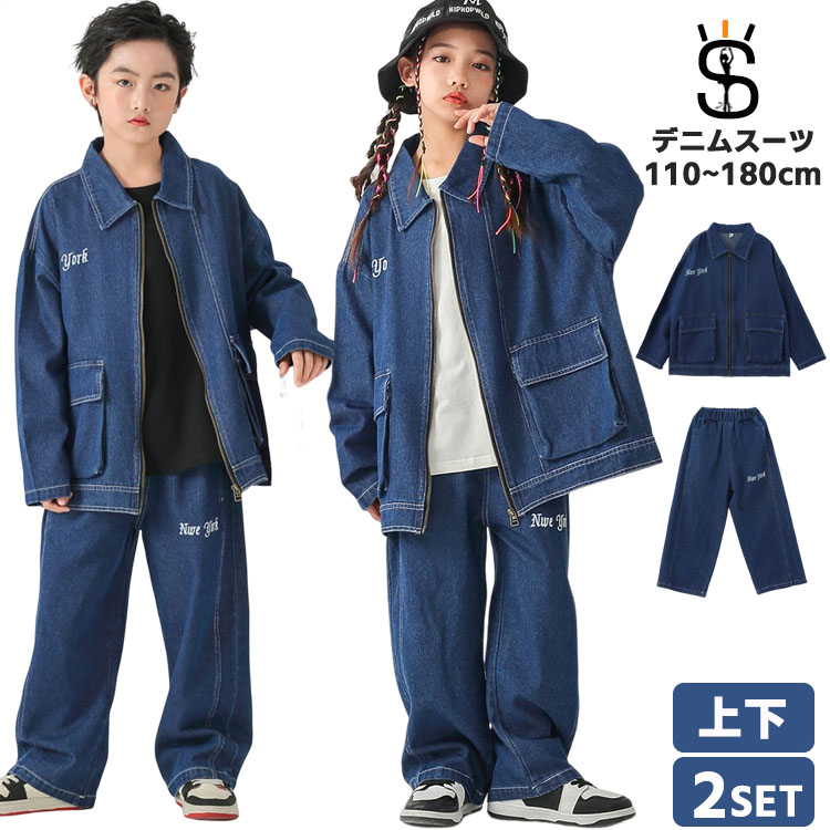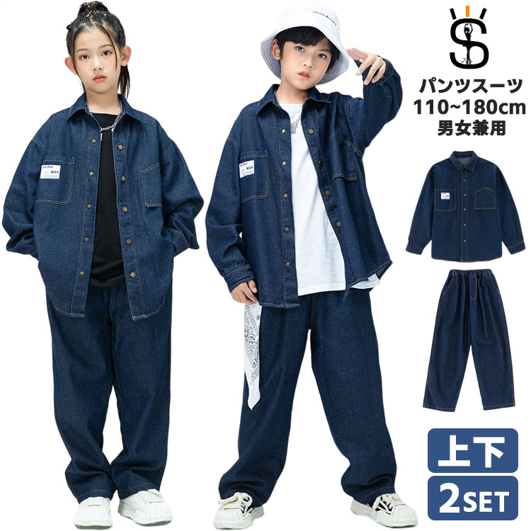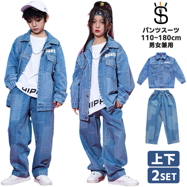 大量注文 2点セット 男女兼用デニムスーツ 子供 キッズ 女の子 男の子 ダンス衣装 ダンス 衣装 ヒップホップ ダンス衣装 セットアップ 衣装