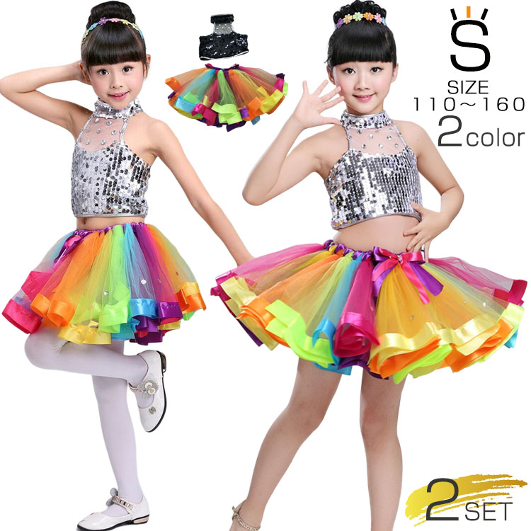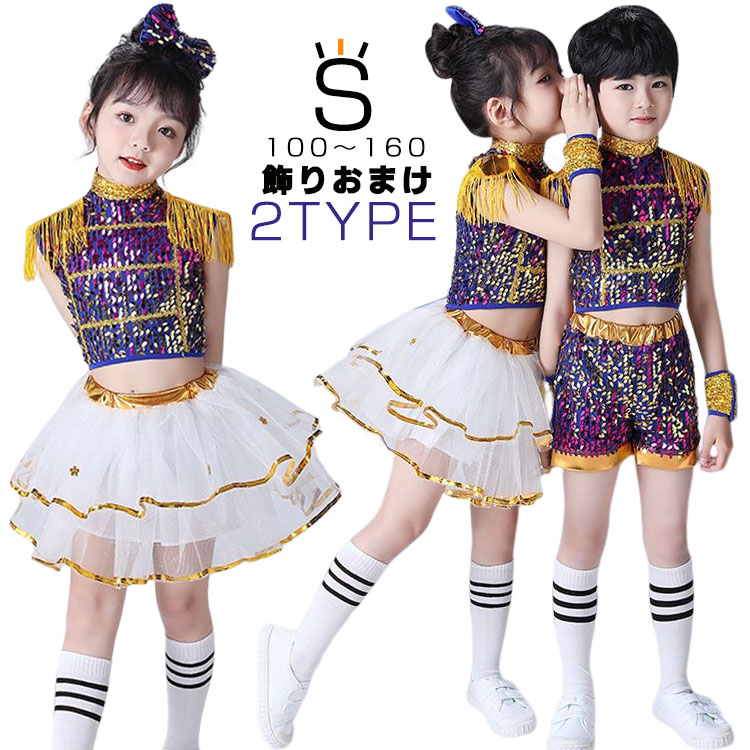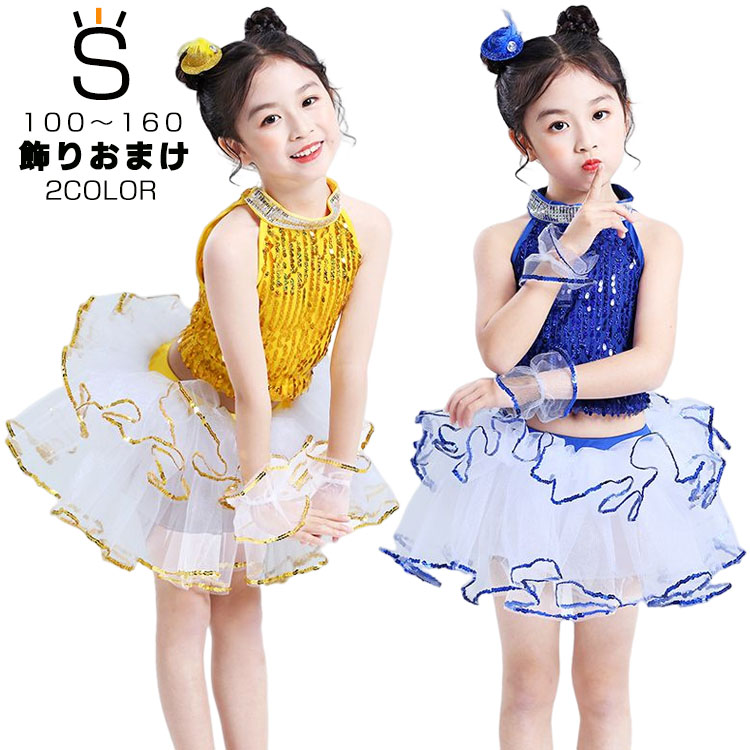 大量注文OK キッズ ダンス衣装 ダンス 衣装 女の子 飾りがおまけ ラテンダンス チアガール チュチュスカート ヒップホップ セットアップ スパンコール スカート