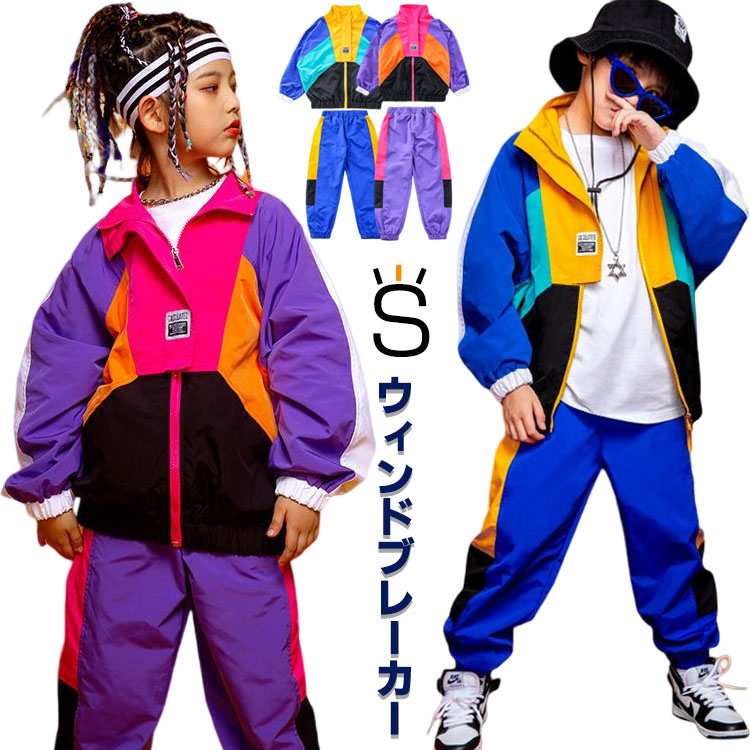 大量注文OK ウィンドブレーカー キッズ ダンス衣装 ヒップホップ セットアップ レディース メンズ 韓国 子ども ジャズダンス 衣装 ブルー 赤