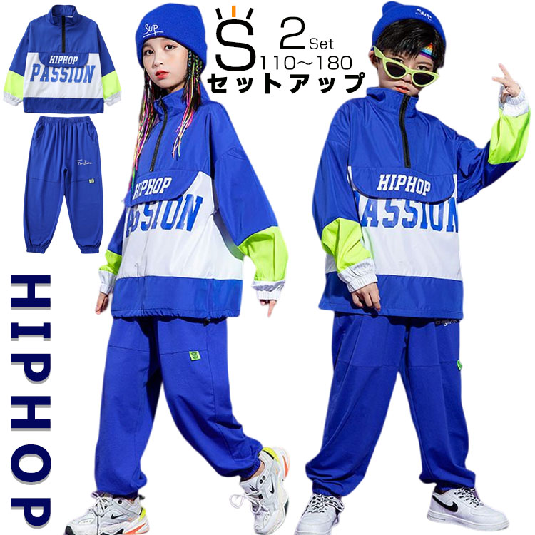 大量注文OK ウィンドブレーカー キッズ ダンス衣装 ヒップホップ セットアップ レディース メンズ 韓国 子ども ジャズダンス 衣装 ブルー ホワイト