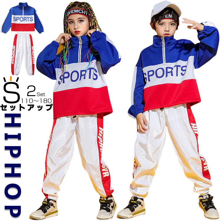 大量注文 ウィンドブレーカー キッズ ダンス衣装 ヒップホップ セットアップ レディース メンズ 韓国 子ども ジャズダンス 衣装 ブルー 赤