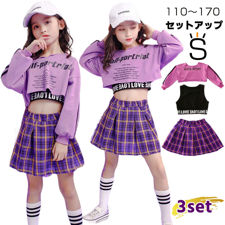 大量注文 3点セット キッズ ダンス衣装 ダンス 衣装 女の子 ジャズダンス 衣装 ラテンダンス チアガール ヒップホップ セットアップ