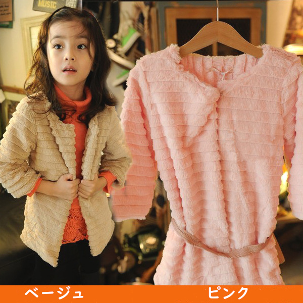 フェイクレザーベルト付き 可愛いポカポカ7分袖丈ファーカーディガンキッズ ベビー マタニティ キッズファッション ワンピース