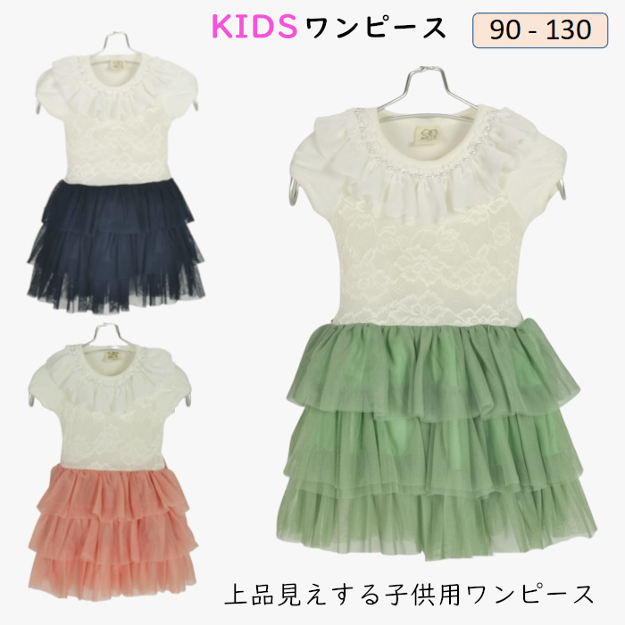 キッズ ワンピース 女の子 夏 ワンピース 子供服 ワンピース パール フリル シーフォン ワンピース 子供服
