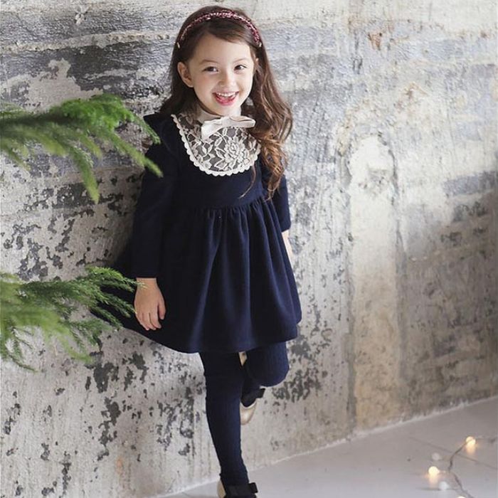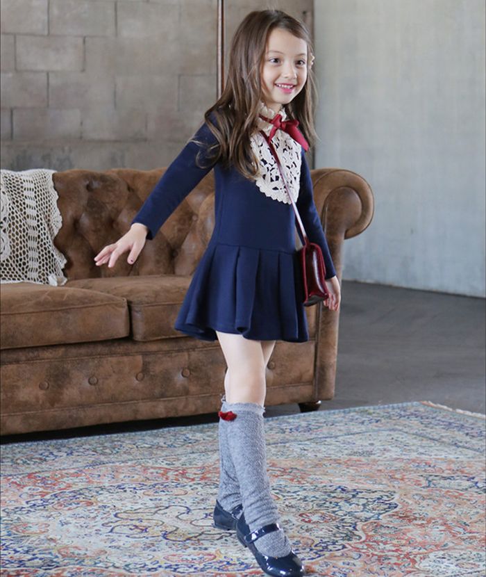 子供服 ワンピース 長袖 おでかけワンピース 入学式や卒園式に大活躍のフォーマル向けネイビーワンピース