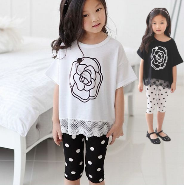 在庫限り 子供服 女の子 夏服 セットアップ キッズ レギンス 2点セット 上下セット 子供服 セットアップ ローズTシャツ スパッツ ローズ ドット Tシャツ