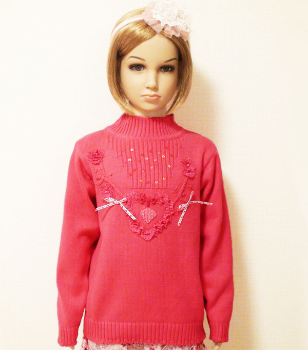 ローズモチーフ&シフォンリボン&ラインストーン付き♪超可愛いセーター子供服キッズ ベビー マタニティ キッズファッション トップス ニット セーター