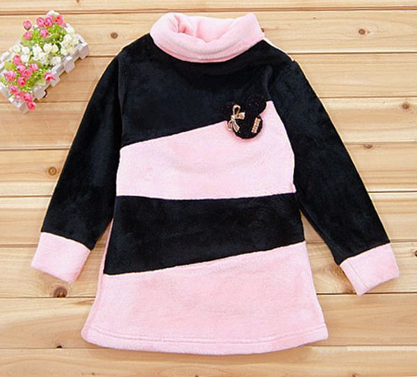 子供服 チュニック 女の子 ミッキーモチーフ付き 暖かい長袖ファーチュニックキッズ ベビー マタニティ キッズファッション ワンピース