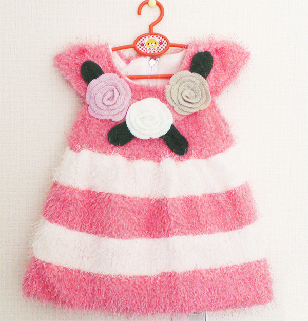 ニットフラワーモチーフ付き♪裏地フリースの超可愛いラメファーチュニックキッズ ベビー マタニティ キッズファッション トップス ニット セーター
