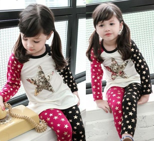 ☆スパンコールの大きな星型ワッペンシャツ&レギンスパンツ☆しっかり生地でお得な上下2点セット☆ 子ども 子供 子供