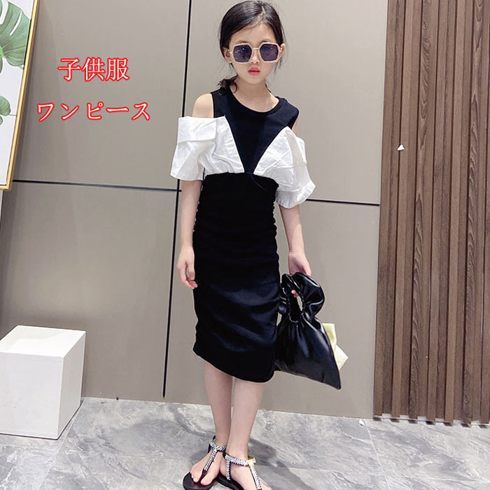 韓国子供服 ワンピース オフショルダー ワンピース 可愛い ピアノ 発表会 卒園式入学式 パーティ 110 120 130 140 150 160cm