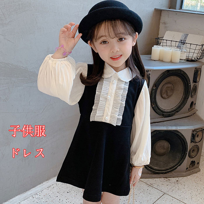 学院風 ドレス 女の子 フォーマルワンピ 結婚式 可愛い 長袖 ワンピース 結婚式 パーティー 発表会 小学校 100 110 120 130 140