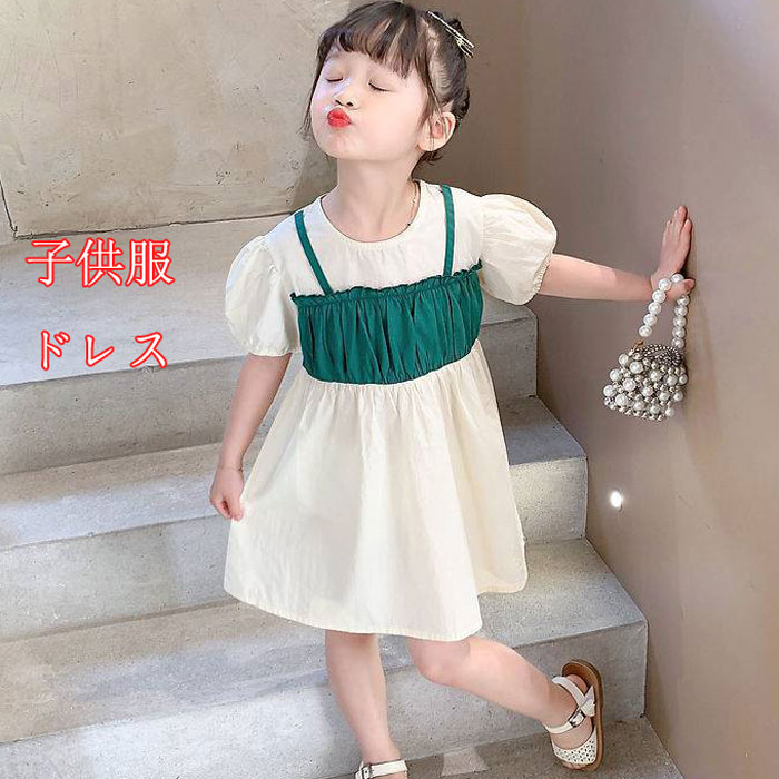 キッズドレス 女の子 夏ワンピ リボン ガールズ 子供ワンピサスペンダースカー 110 120 130 140 150 160cm