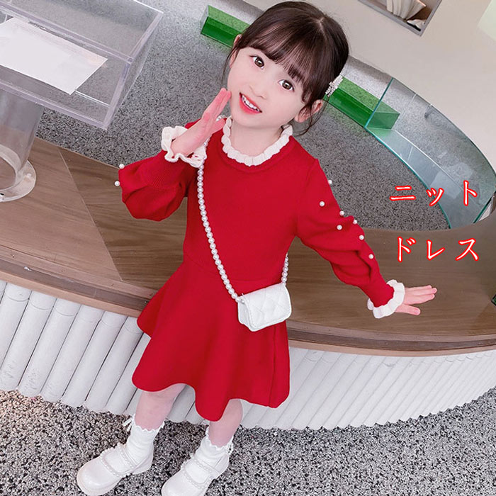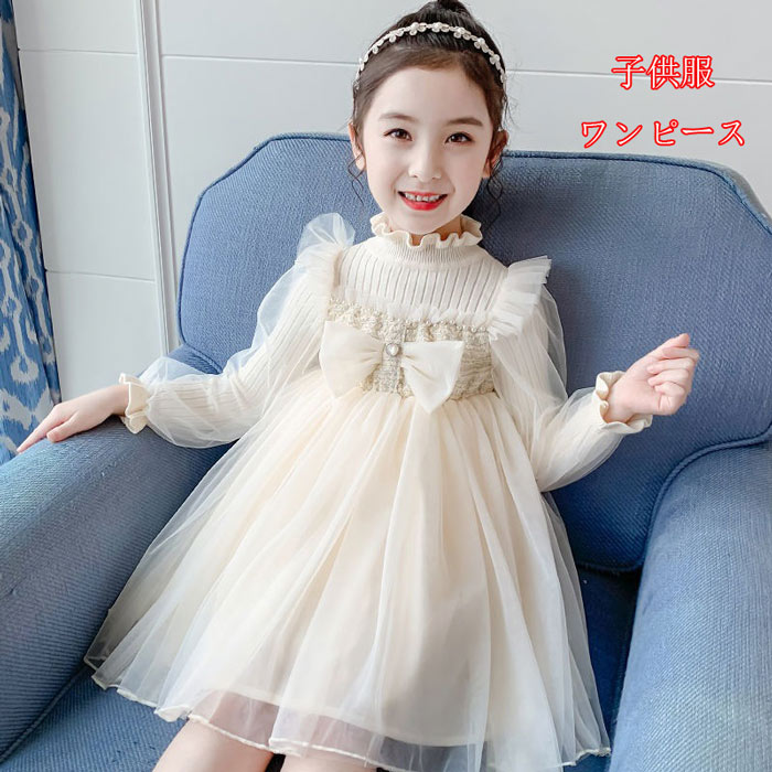 子供ワンピースドレス ニットワンピ長袖 女の子 かわいい ワンピ Aライン キッズワンピース結婚式発表会七五三110cm 120cm 130cm 140cm 150cm 160cm