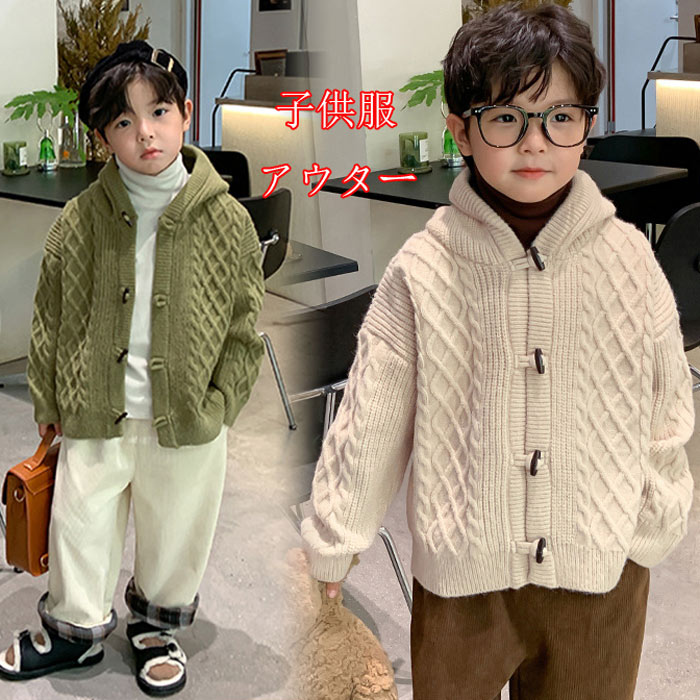 ベビー服 ニットカーディガン ニット アウター ケーブル編み ネック セーター ニット アウター 90 100 110 120 130