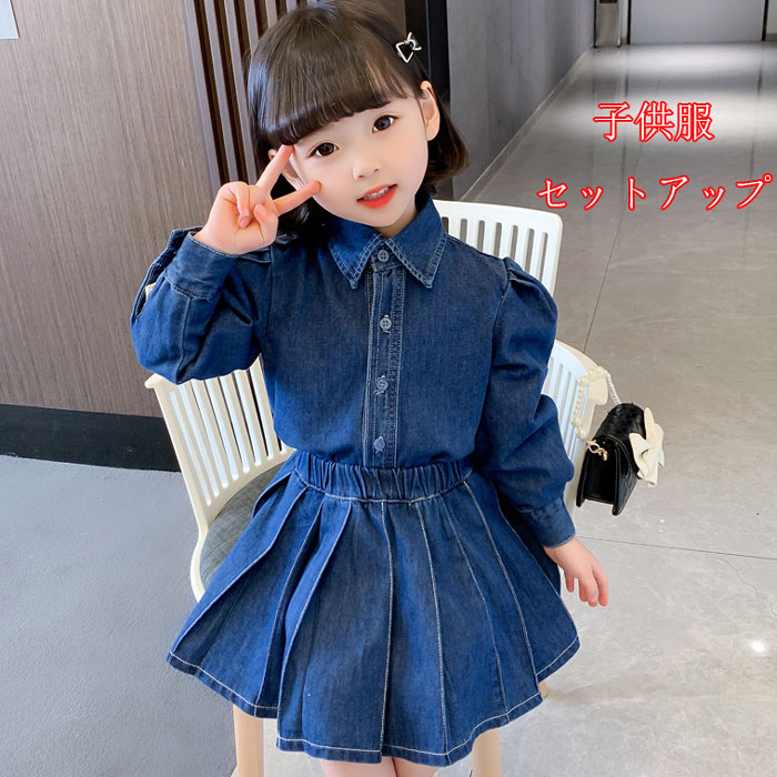 キッズ デニム セットアップ 韓国子供服 2点セット 女の子 カジュアル トップス+ ショートスカート90cm 100cm 110cm 120cm 130cm
